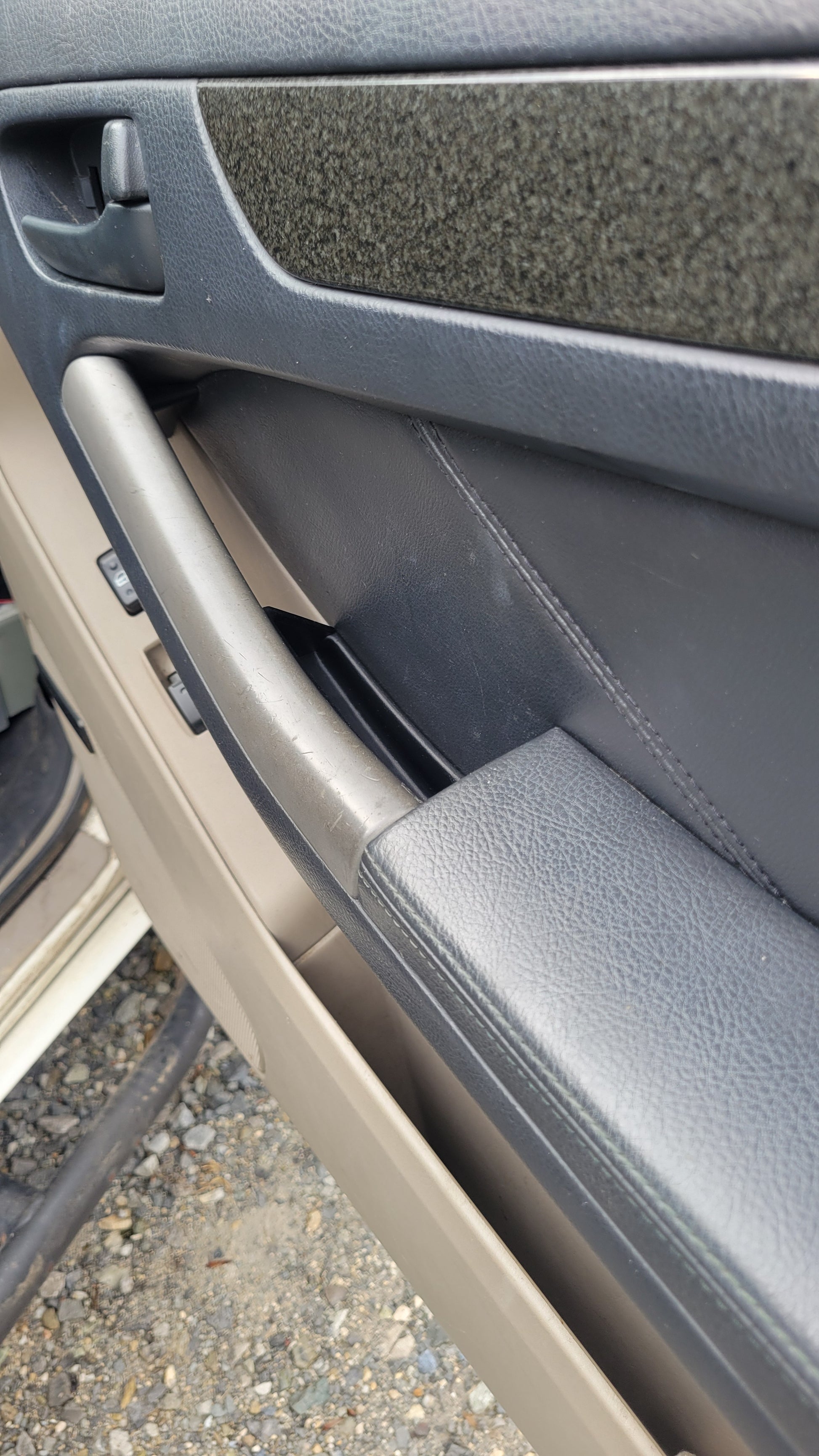 Installation is straight forward: Simply remove the leather arm rest (it pulls straight up), and remove the big screw that it exposes. This will let you pull the interior door panel away from the main door body just a little bit - in turn, letting you easily drop the cubby down into place. The lip on the rear of the cubby should sit on the ledge in the back, and the 'notch' on the side of the cubby in the front should sit right at the interface between the leather (or cloth) and the plastic trim in the door. Once it's in place, go ahead and reinstall the screw you took out and pop the armrest back on. Voila!