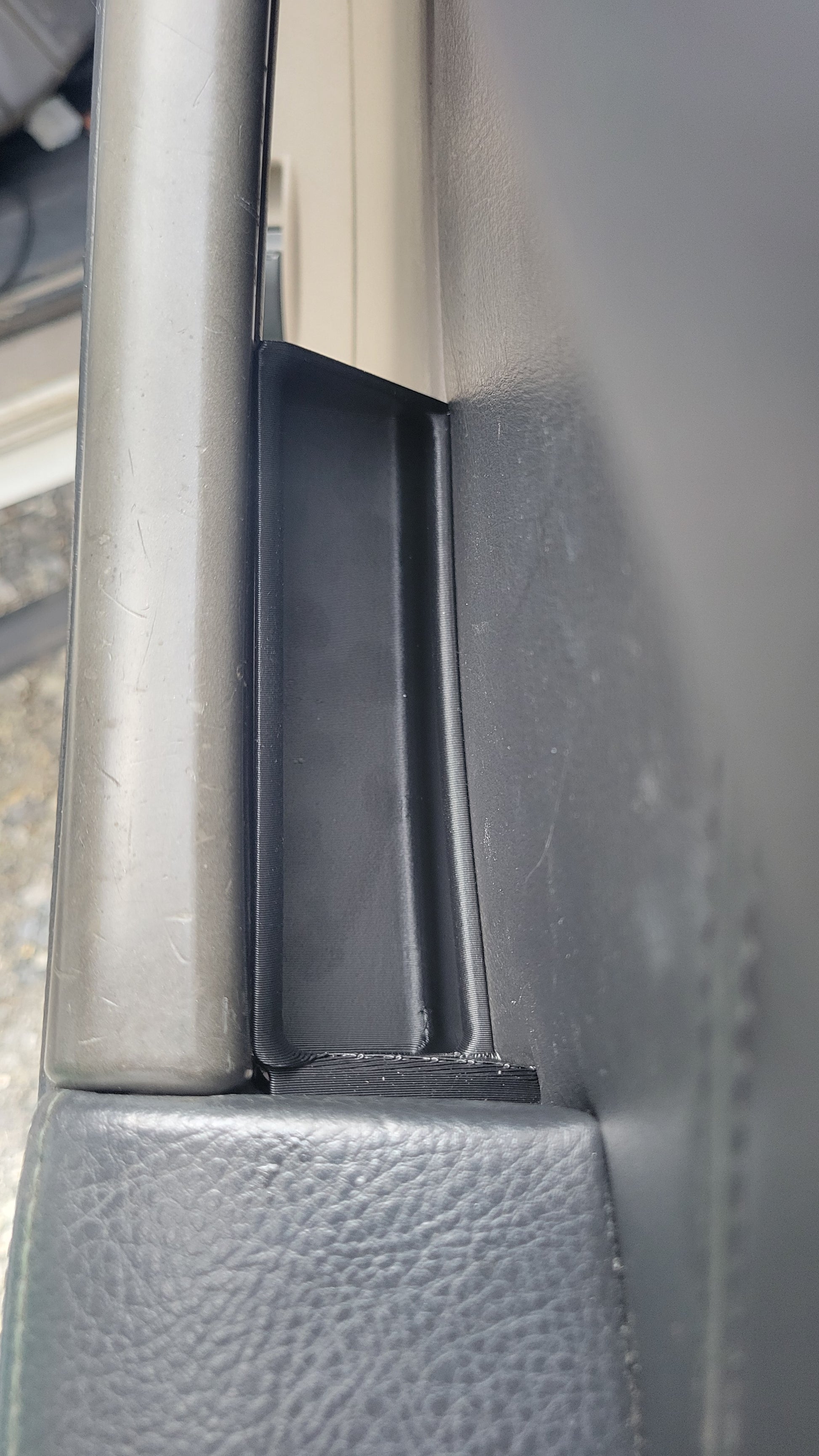 We've all done it: Get in the truck, close the door, and set our phone/wallet/change/etc into the door grab handle recess... only for it to drop down to the floor because Toyota didn't actually close off the bottom of the grab handle area! This addresses that problem by providing an easy-to-install solution that provides a floor for that space without getting in the way of using it to shut the door with. It contours perfectly to the area, and doesn't protrude out the bottom or otherwise interfere with any functions.Â